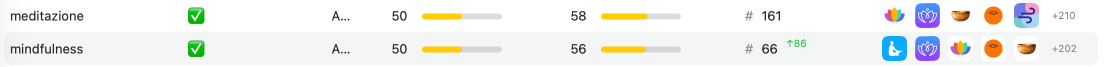 Keyword: Meditazione. Before: Not ranked. After: Position 161.